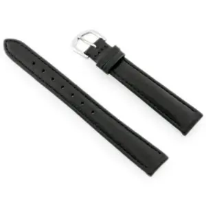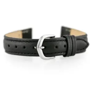 Természetes bőrből készült, fekete varrású óraszíj, amely kényelmes viseletet és elegáns megjelenést biztosít a karórának. A 14 mm-es rögzítési szélesség és az ezüstszínű csat praktikus, stílusos csere lehet a mindennapokra.