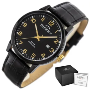 Köszöntsd az időtlen eleganciát a Bisset BSCE62 férfi karórával, amely a svájci precizitást ötvözi a modern, egységes fekete megjelenéssel.