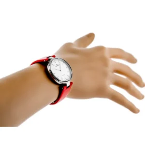 A karcálló zafírüveg miatt hosszú éveken át megőrzi hibátlan fényét, a svájci szerkezet pontos időt garantál, a piros bőrszíj pedig azonnal magára vonja a tekinteteket.