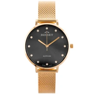 A Bisset BSBF30 elegáns női karóra rozéarany nemesacél tokkal és szíjjal, amelyet karcálló zafírüveg véd. A svájci Ronda kvarc szerkezet megbízható pontosságot biztosít, míg az állítható csat kényelmes illeszkedést tesz lehetővé.