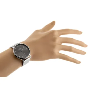 • Színvilág: szürke számlap, ezüst indexek és karkötő