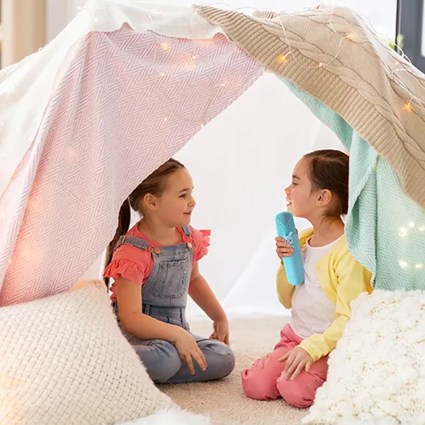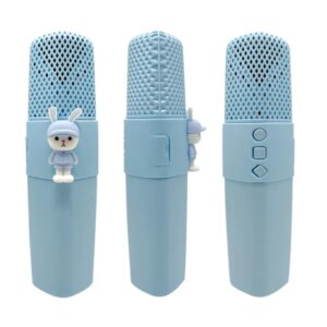 Szeretnéd, ha a gyereked saját mini színpadán énekelhetne? A kék, nyuszi fülű Bluetooth karaoke mikrofon beépített 3 W-os hangszóróval és 600 mAh akkumulátorral akár 5 órán át gondoskodik a szórakozásról.