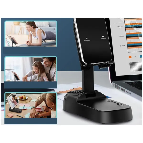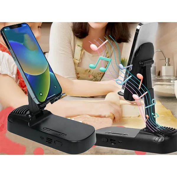 Az eszköz 3 az 1-ben megoldás: stabil asztali telefontartó, erőteljes Bluetooth hangszóró és vészhelyzeti powerbank egyetlen, könnyen hordozható házban. A teleszkópos kar 4–12 cm között állítható, a dőlésszög fokozatmentesen igazítható, így filmnézéshez, videohíváshoz vagy munkához is ergonomikus betekintési szöget biztosít.