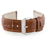 Elegáns, természetes marhabőrből készült barna óraszíj, amely kifinomult megjelenést kölcsönöz bármely 20 mm-es tokkal rendelkező karórának. A puha, mégis tartós bőr kényelmes viseletet garantál, az ezüstszínű, nikkelmentes csat pedig biztonságos zárást és hosszú élettartamot biztosít.