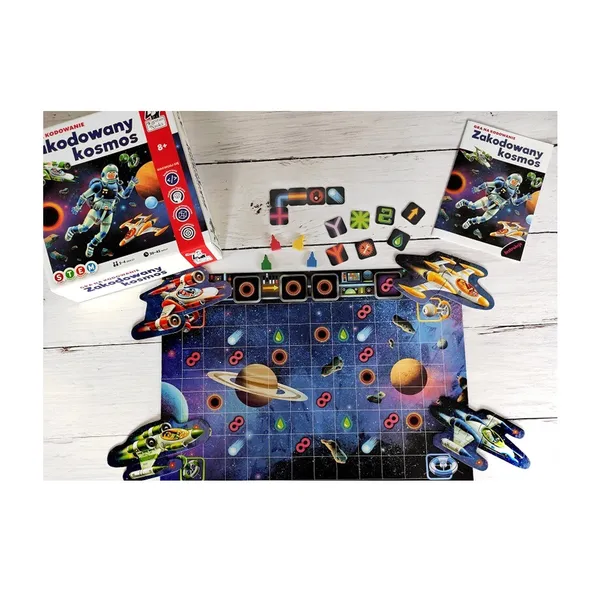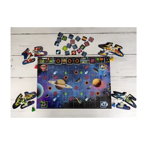 • Tartalom: kódpaneles játéktábla, 72 kódoló és útjelző zseton, 4 űrhajó-puzzle, 4 rakéta bábu, magyar nyelvű szabálykönyv