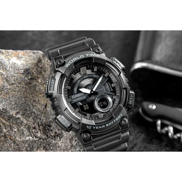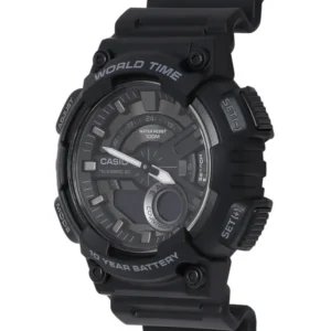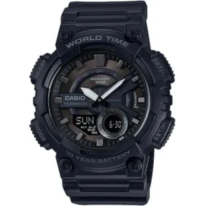 A Casio AEQ-110W-1BVEF sportos férfi karóra ideális választás mindennapi viselethez és aktív életmódhoz is. A robusztus műanyag tok és szíj kényelmes, mégis strapabíró megoldás, a mineralüveg pedig hatékonyan védi a számlapot a karcoktól. Az analóg-digitális kijelzés gyors leolvashatóságot ad, a WR100 vízállóság pedig magabiztossá teszi a vizes programok során is.