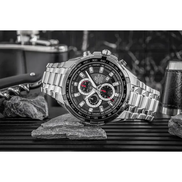 Casio EF-539D-1AVEF elegáns, mégis sportosan használható férfi karóra, amely megbízható kvarc szerkezettel és időtálló acél kivitelével ideális választás mindennapokra és alkalmi megjelenéshez is. A fekete számlap és az ezüst színű acél szíj klasszikus, könnyen kombinálható összhatást ad.