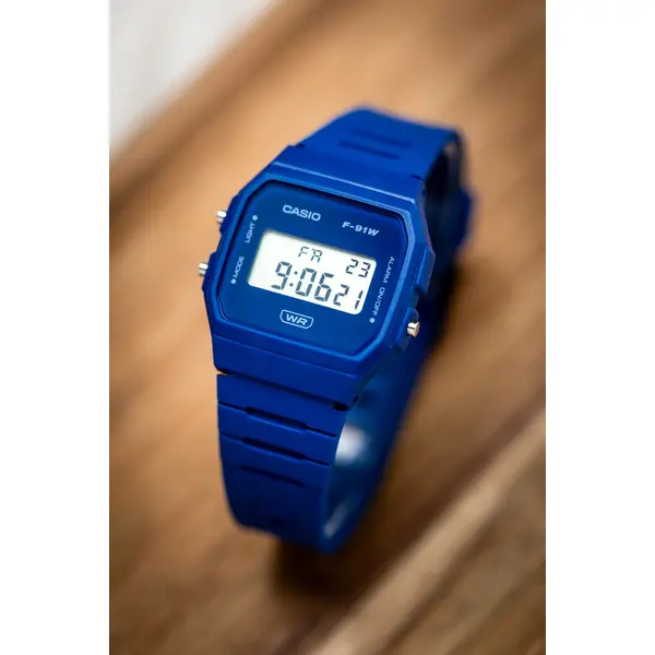A Casio F-91WB-2A1DF egy igazi designikon: letisztult, retro hangulatú digitális karóra, amely évtizedek óta a megbízhatóság és a praktikum szinonimája. A sötétkék, téglalap alakú tok és a hozzá illő számlap harmonikus, 90-es éveket idéző megjelenést ad, miközben a könnyű kialakítás egész nap kényelmes viseletet biztosít.