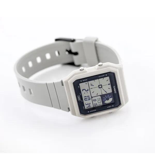 A Casio LF-20W-8A férfi digitális karóra sportos, modern és sokoldalú modell, amely ideális választás az aktív életmódot kedvelők számára. A fehér tok és szíj, valamint a fekete digitális kijelző letisztult, határozott megjelenést ad, amely hétköznapi és szabadidős viselethez egyaránt jól illik.
