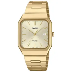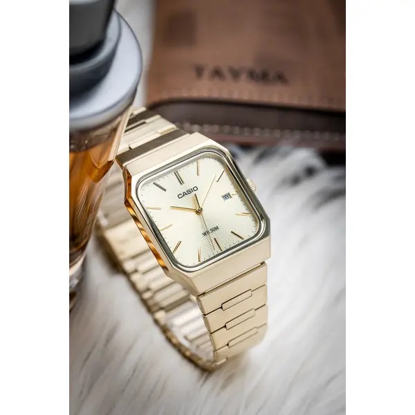 A Casio MTP-B185G-9A férfi karóra az elegáns megjelenést megbízható, mindennapi használhatósággal ötvözi. Minimalista, mégis modern dizájnja magabiztos, klasszikus stílust ad, az arany színű számlap pedig kifinomult hatást kelt.