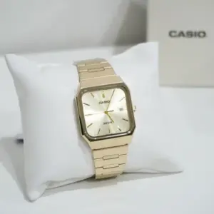 Casio férfi karóra arany számlappal, acél szíjjal, dátummal, WR50