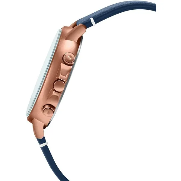 Elegáns, sötétkék számlapos férfi karóra rose gold színű tokkal és kényelmes bőrszíjjal, amely könnyen illik üzleti és alkalmi öltözethez is. A pontos кварc szerkezet, a dátumkijelzés és a WR50 vízállóság gondtalan, mindennapi használatot ad.