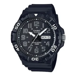 A Casio MRW-210H-1AVEF férfi karóra megbízható, mindennapokra tervezett modell: klasszikus analóg megjelenés, könnyű viselet és praktikus funkciók egy sportosan letisztult, fekete kivitelben. A kvarc szerkezet pontos járást biztosít, a 100 méteres vízállóság pedig gondtalan használatot ad a hétköznapokban és aktívabb programok során is.