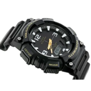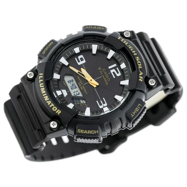 A Casio AQ-S810W-1BV férfi karóra a modern, sportos megjelenést megbízható mindennapi funkcionalitással ötvözi. A fekete számlap analóg mutatókkal és digitális kijelzővel dolgozik együtt, így gyorsan és könnyen leolvashatók az információk bármilyen helyzetben. A beépített szolár töltés gondoskodik a kényelmes használatról, miközben a WR100 vízállóság aktív életmódhoz is ideálissá teszi.