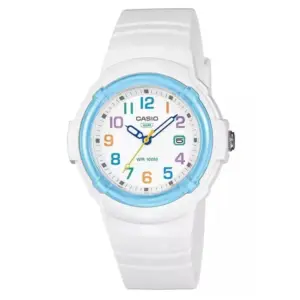 A Casio LX-800H-7A2V gyermek karóra letisztult, modern megjelenésével és könnyen leolvasható, kék számlapjával ideális választás a mindennapokra. A fehér tok és a hozzá illő fehér műanyag szíj friss, sportosan elegáns összhatást teremt, így az óra iskolába, szabadidős programokhoz és hétköznapi viselethez is remekül illik.