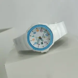 Könnyű, kényelmes gyermek karóra jól leolvasható kék számlappal és tartós műanyag kialakítással, amely ideális a mindennapi használathoz. A WR100 vízállóság és a pontos кварc szerkezet megbízható választássá teszi aktív napokra is.