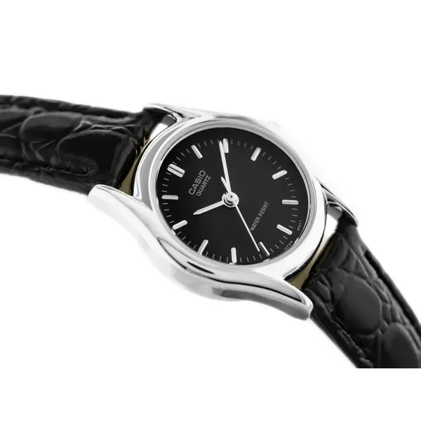 Az elegáns, japán kvarc szerkezettel működő Casio LTP-1094E-1ARDF női karóra finom vonalaival emeli ki a mindennapi és alkalmi öltözékeket is. A 23 mm-es, polírozott ezüstszínű rozsdamentes acél tokot fekete, jól olvasható számlap és karcálló ásványi üveg védi, míg a puha, valódi bőrszíj gondoskodik a kényelmes viseletről.