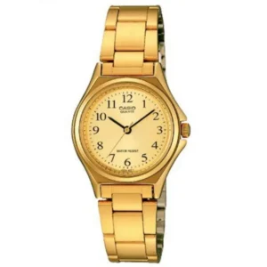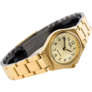 Elegáns, aranyszínű Casio karóra karcsú, 24 mm-es tokjával könnyedén illik minden csuklóra, a karcálló ásványi üveg és a rozsdamentes acél szerkezet pedig hosszú élettartamot garantál. Precíz kvarc-szerkezete és 30 m-es vízállósága gondtalan mindennapi viselést kínál.
