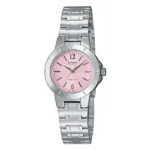 A Casio LTP-1177A-4A1 női karóra visszafogottan elegáns választás azoknak, akik egy időtálló, mégis finom ékszert keresnek mindennapi viselethez és alkalmi megjelenéshez. A csillogó ezüstszínű, rozsdamentes acél tok és szíj harmonikusan keretezi a lágy rózsaszín számlapot, így egyszerre nőies és modern.