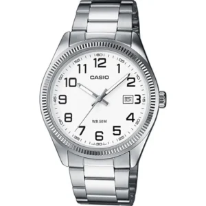 A Casio MTP-1302D-7B férfi karóra letisztult, üzleties megjelenést ad a mindennapokhoz és az alkalmi viselethez egyaránt. Az ezüstszínű acél tok és csat prémium hatást kelt, a fehér számlap pedig elegáns, könnyen leolvasható összképet biztosít.