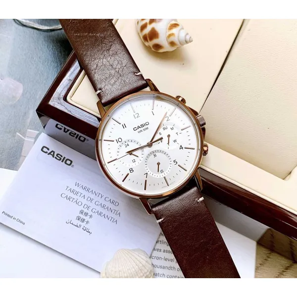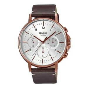Casio MTP-E321RL-5A férfi karóra, barna bőrszíj, kronográf, WR50