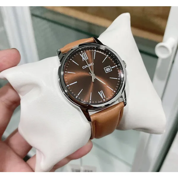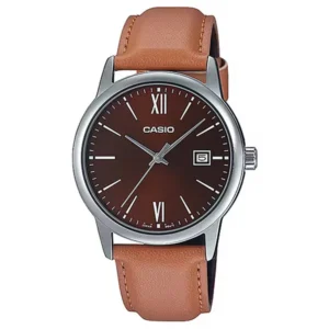 Casio MTP-V002L-5B3 férfi karóra barna bőrszíjjal, dátum, WR30