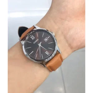 Az elegáns Casio MTP-V002L-5B3 férfi karóra a letisztult formavilágot ötvözi a japán pontossággal. Barna számlapján a kontrasztos indexek és mutatók pillantásra leolvashatók, a 3-óránál elhelyezett dátumkijelző pedig naprakészen tart.