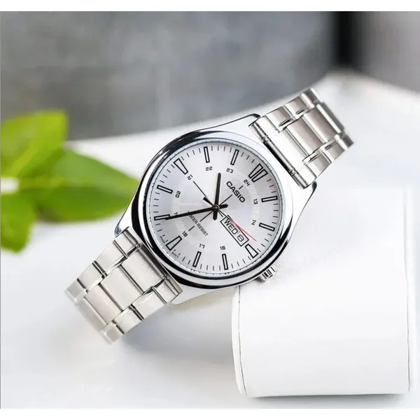 A Casio MTP-V006D-7CUDF azoknak készült, akik a klasszikus stílust a megbízható technológiával ötvöznék. Viselje üzleti tárgyaláson, hétvégi vacsorán vagy akár a hétköznapi rohanásban – mindig kifogástalan megjelenést biztosít.