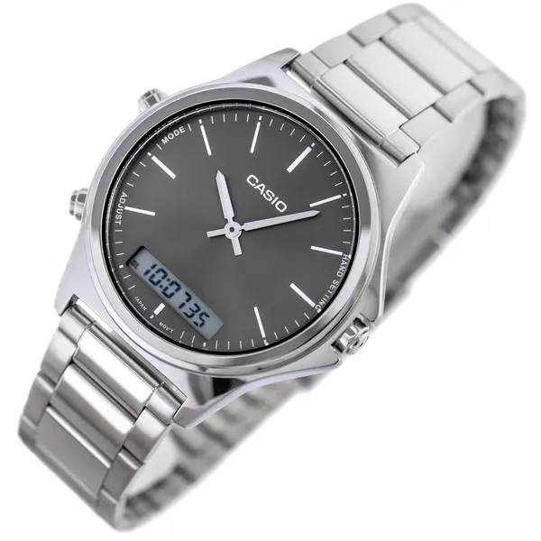 A Casio MTP-VC01D-8E férfi karóra elegáns, mégis kifejezetten praktikus választás a mindennapokra és alkalmakra. A nemesacél tok és csat időtálló, prémium megjelenést ad, a szürke számlap pedig modern, visszafogott karaktert kölcsönöz – könnyen kombinálható üzleti és casual öltözetekkel is.