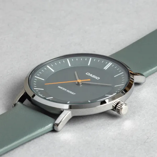 A Casio MTP-VT04L-8E férfi karóra letisztult, szürke számlapjával és keskeny, 8 mm-es nemesacél tokjával elegáns kiegészítő üzleti találkozókhoz és hétvégi programokhoz egyaránt. A puha, szürke bőr szíj kényelmes viseletet biztosít, miközben a minimalista dizájn kiemeli a jó ízlést.
