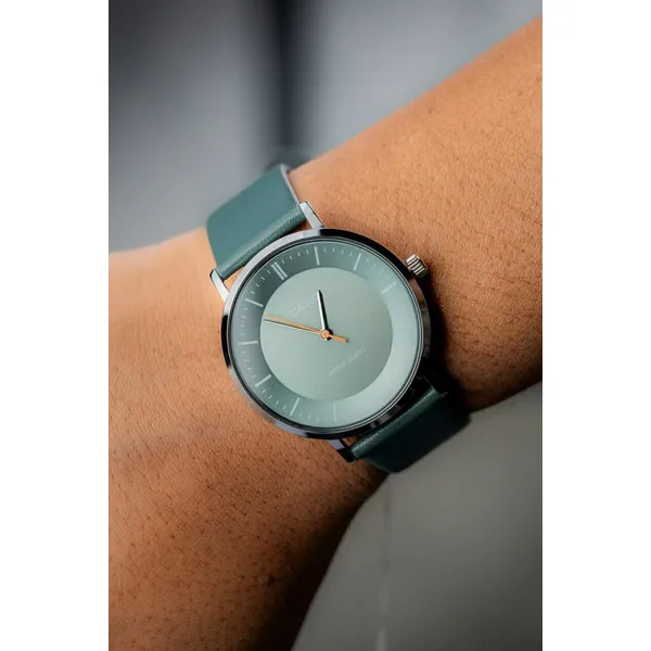 Egyedi, szürke számlapos férfi karóra puha bőrszíjjal, amely a minimalista eleganciát képviseli az irodában és hétvégén egyaránt. Kvarc pontosság, karcálló ásványi üveg és 30 m vízállóság gondoskodik a mindennapi megbízhatóságról.