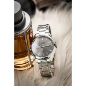 Elegáns, rozsdamentes acél kivitel szürke számlappal és karcálló zafírüveggel, amely hosszú távon is megőrzi prémium megjelenését. Pontos кварc szerkezet, praktikus dátumkijelzés és WR50 vízállóság a gondtalan, mindennapi viselethez.