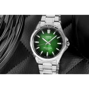 Casio MTS-RS100D-3A férfi karóra zöld számlappal, zafír üveg, acél szíj