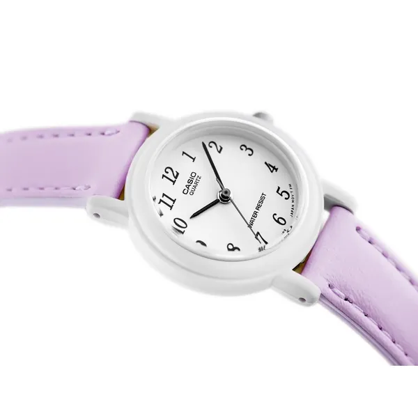 Casio női analóg kvarc karóra, lila bőrszíj, 25 mm, WR30