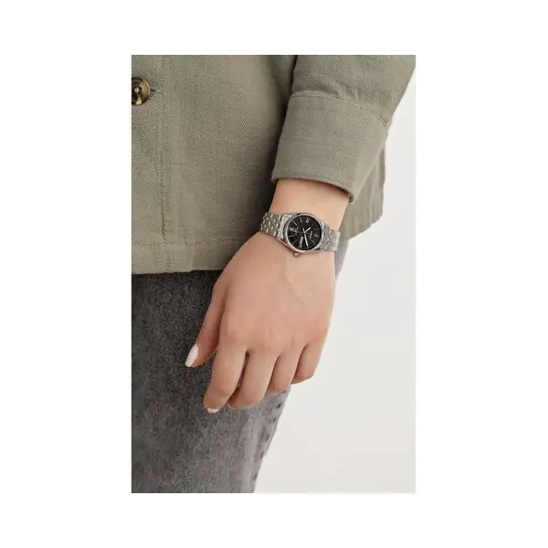 Elegáns, ezüstszínű acél karóra letisztult fekete számlappal, amely könnyen illik a hétköznapi és alkalmi szettekhez is. A pontos kvarc szerkezet, a praktikus dátumkijelzés és a WR50 vízállóság kényelmes, gondtalan viseletet ad a mindennapokban.