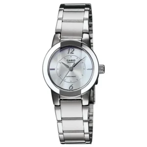 A Casio LTP-1230D-7CDF egy elegáns, klasszikus megjelenésű női karóra, amely a letisztult dizájnt a mindennapi praktikumával ötvözi. A rozsdamentes acél tok tartós és ellenálló, miközben finoman kiemeli az óra elegáns karakterét.