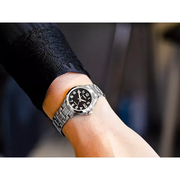A strapabíró, rozsdamentes acél tok és acél szíj kényelmes viseletet ad, miközben jól bírja a mindennapi használatot. A mineralüveg ellenálló, és kisebb karcok esetén polírozható. A biztonságos csat segít, hogy az óra stabilan a csuklón maradjon, mégis egyszerűen fel- és levehető.