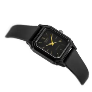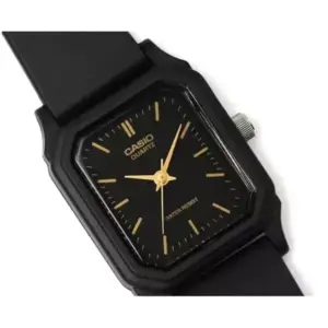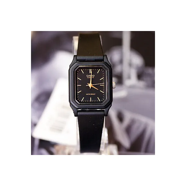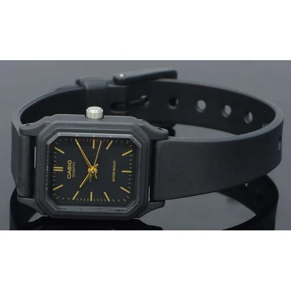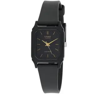 A Casio LQ-142-1E női karóra a klasszikus megjelenést ötvözi a mindennapi praktikummal. A fekete, téglalap alakú tok és a hozzá illő műanyag szíj letisztult, elegáns összhatást ad, így ez a modell remek választás hétköznapi viselethez és visszafogottabb alkalmakra is. A fekete számlap jól olvasható kialakítása diszkrét, mégis stílusos megjelenést biztosít.