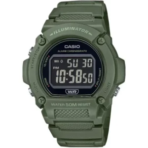 A Casio W-219HC-3BVDF férfi digitális karóra remek választás, ha a letisztult, retro hangulatú megjelenést a mindennapi praktikummal szeretnéd ötvözni. A jól olvasható, fekete digitális kijelző, a könnyű műanyag tok és a kényelmes zöld szíj olyan páros, amely utcai viselethez és aktív napokhoz is megbízható társ.