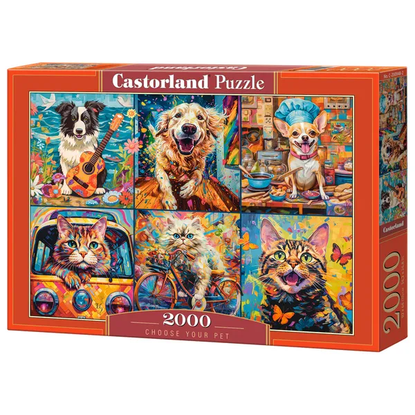 A Choose Your Pet 2000 db-os puzzle egy vidám, szerethető kirakó 6 bájos házikedvenccel – 3 kutyával és 3 cicával. A kedves, barátságos illusztráció tele van apró részletekkel és karakterrel, így minden darab a kikapcsolódás élményét adja.