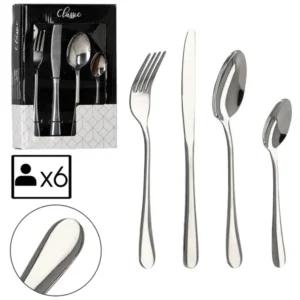A Classic 24 részes evőeszköz készlettel könnyedén teremthetsz elegáns, harmonikus terítéket akár hétköznapi vacsorához, akár ünnepi alkalmakhoz. A rozsdamentes acél alapanyagnak köszönhetően a darabok csillogóak, tartósak és mosogatógépben is biztonságosan tisztíthatók.