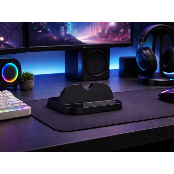 Stabil, csúszásgátló talppal és felfekvő felülettel készült asztali tartó, hogy a konzol biztonságosan a helyén maradjon játék vagy videónézés közben. Kompakt kialakítása kevés helyet foglal, miközben kényelmesebb betekintési szöget ad az íróasztalon vagy polcon.
