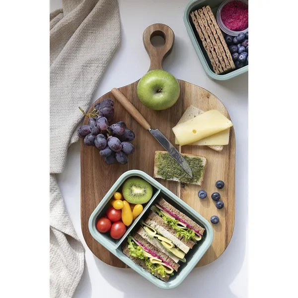 A Smart To Go Eco Line téglalap alakú ételtároló doboz praktikus megoldás, ha friss, házi készítésű ételeket vinnél magaddal munkába, iskolába vagy kirándulásra. A fedélben lévő tömítés és a masszív zárófülek segítenek megőrizni az ételek frissességét, a belső elválasztó pedig lehetővé teszi a különböző összetevők elkülönítését.