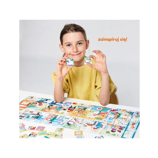 A 60 nagy, strapabíró darabból álló puzzle játékosan fejleszti a finommotorikát és a megfigyelőképességet. A memória-kártyák és az oktató poszter segítségével a gyerekek izgalmasan ismerkednek meg az állatorvos hivatásával.