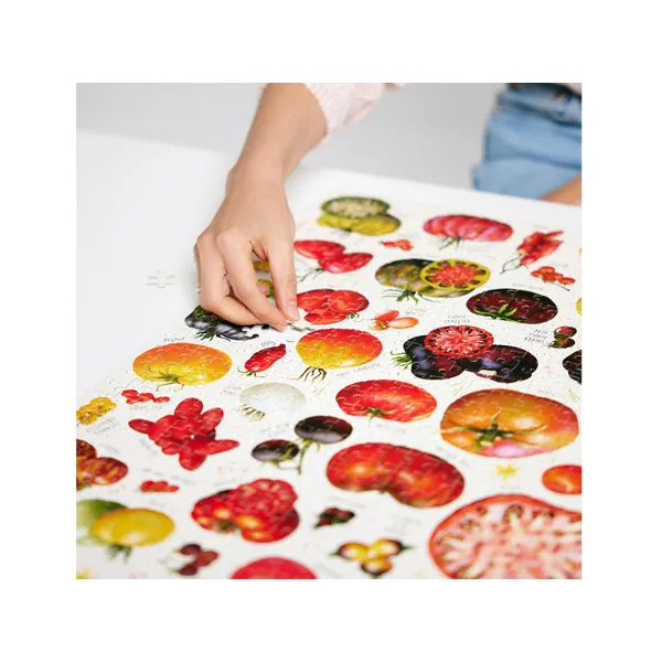 Képzeld el, ahogy a meleg nyár illata betölti a szobát, miközben az 1000 darabos CzuCzu Puzzlove paradicsomos kirakó apró részletei a helyükre kerülnek. A természetes színekben pompázó illusztráció nemcsak látványos faldekoráció, hanem koncentrációt fejlesztő elfoglaltság is egyben.