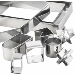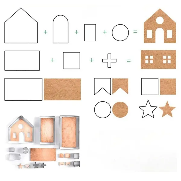 A rozsdamentes acél kiszúrók precíz formát adnak minden falnak és tetőnek, így stabil, mutatós mézeskalács ház készülhet, amelynek összeállítása és díszítése az egész család számára szórakoztató ünnepi program.