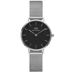 A Daniel Wellington Petite Sterling DW00100162 a letisztult, prémium minimalizmus megtestesítője. A 32 mm-es, karcsú tok és a fekete–ezüst színpárosítás elegáns, könnyen kombinálható kiegészítővé teszi – akár mindennapokra, akár alkalmi megjelenéshez.