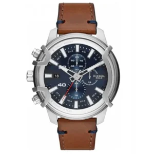 Diesel Griffed DZ4518 férfi karóra, barna bőrszíj, kék számlap, 50 m