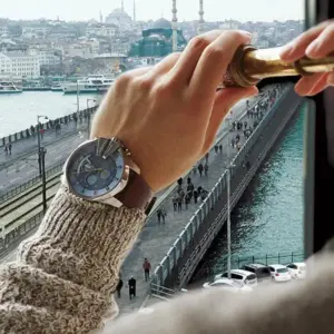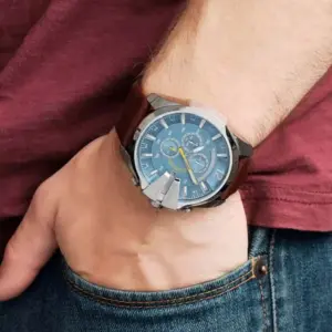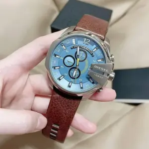 Karakteres, nagy méretű férfi karóra, amely kék számlappal és valódi barna bőrszíjjal emeli ki az öltözéket. A kronográf, a dátumkijelzés és a WR100 vízállóság egyszerre nyújt látványos megjelenést és mindennapi használhatóságot.