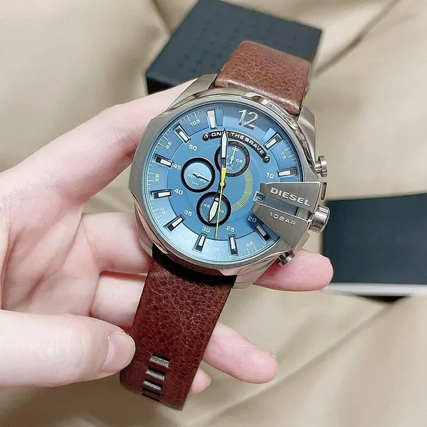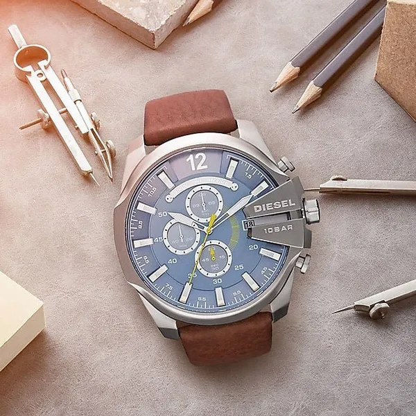 Diesel Mega Chief DZ4281 férfi karóra, kék számlap, barna bőrszíj